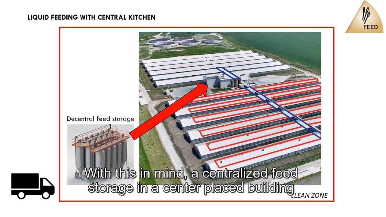 Centralized feed storage means that you can control the unloading of feed. The feed is delivered to an isolated building, where the workers can inspect and manage the feed storage inside the building without risking the clean zone.